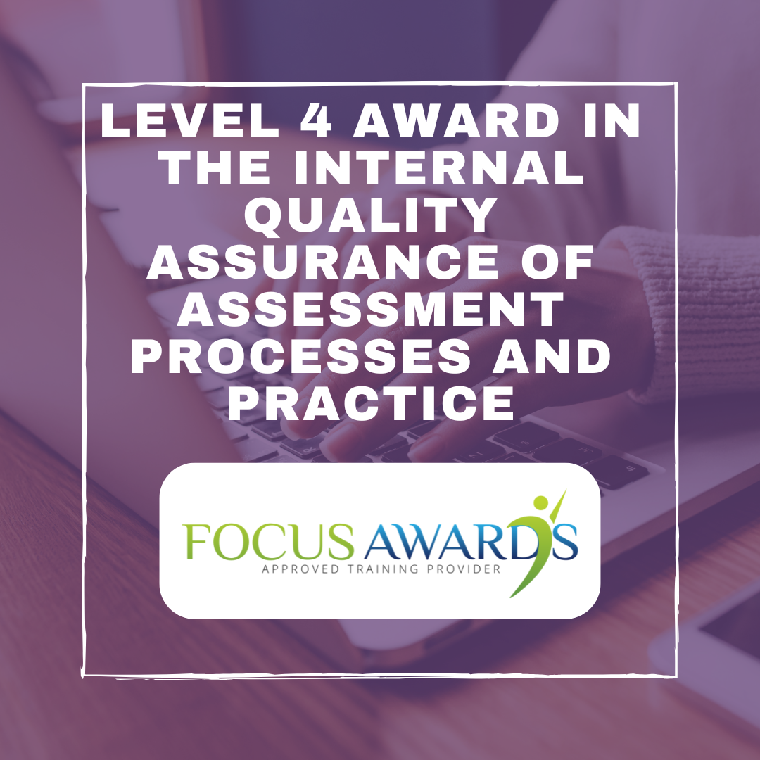 Level 4: Award in the Internal Quality Assurance of Assessment Processes and Practice, Certified by Focus Awards.